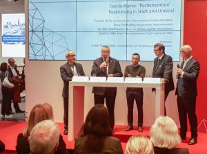 Unisono vertrat das hochkarätig besetzte Podium die Einschätzung, dass Rechenzentren einen großen Standortvorteil für die Kommunen darstellen. Es wurde prognostiziert, dass der Bedarf an Gewerbeflächen für Rechenzentren weiter steigt, da das Datenvolumen von privaten Haushalten und Unternehmen ständig wächst. In diesem Zusammenhang wird der Ausbau des Glasfasernetzes als unabdingbar angesehen und die Entwicklung einer regionalen Rechenzentrumstrategie als sinnvoll erachtet. Aber auch ökologische Aspekte wie der Stromverbrauch und die Nutzung von Abwärme wurden thematisiert.