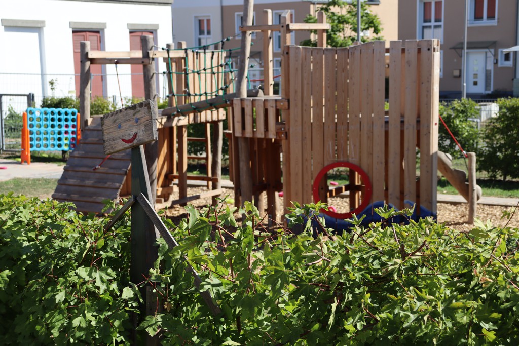 In unmittelbarer Nähe sind verschiedene Einkaufsmöglichkeiten, die S-Bahn-Station, die evangelische Kindertagesstätte „Sonnenschein“, das Rosarium, ein Seniorenstift, eine Zweigstelle der EVIM Behindertenhilfe und ein kleiner Tierpark zu finden. Außerdem gibt es in Hattersheim insgesamt vier Grundschulen und 13 weitere Kinderbetreuungseinrichtungen. Die meisten Kinder, die unsere Einrichtung besuchen, wohnen in unmittelbarer Nähe der KiTa. Viele Familien sind durch die Entstehung neuer Wohnviertel nach Hattersheim gezogen.